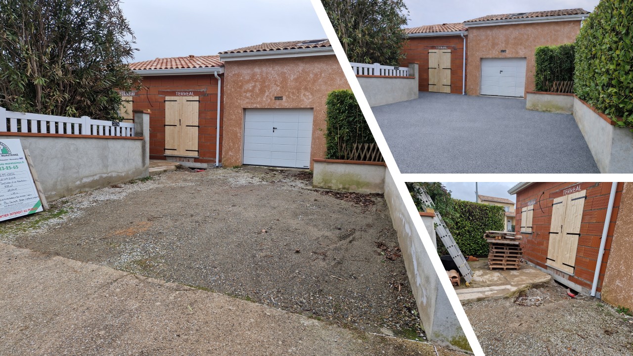 Il y a la zone devant le garage, et la devanture de la façade côté gauche à réaliser. Un pavage sera nécessaire entre les deux zones et en bas du dénivelé de l'allée. Il est prévu également la pose d'un portail (prévoir semelle et terrassement dans le devis).